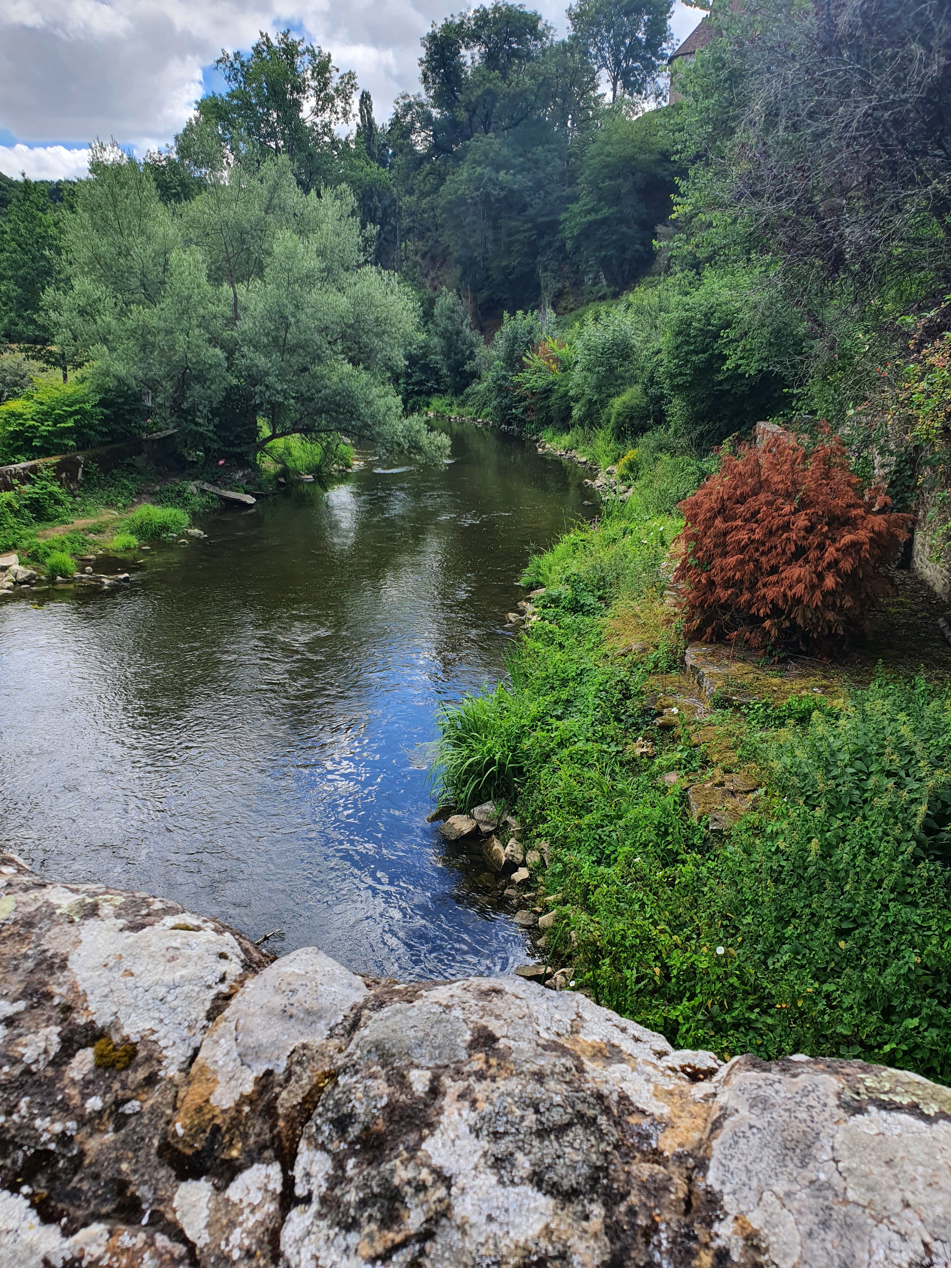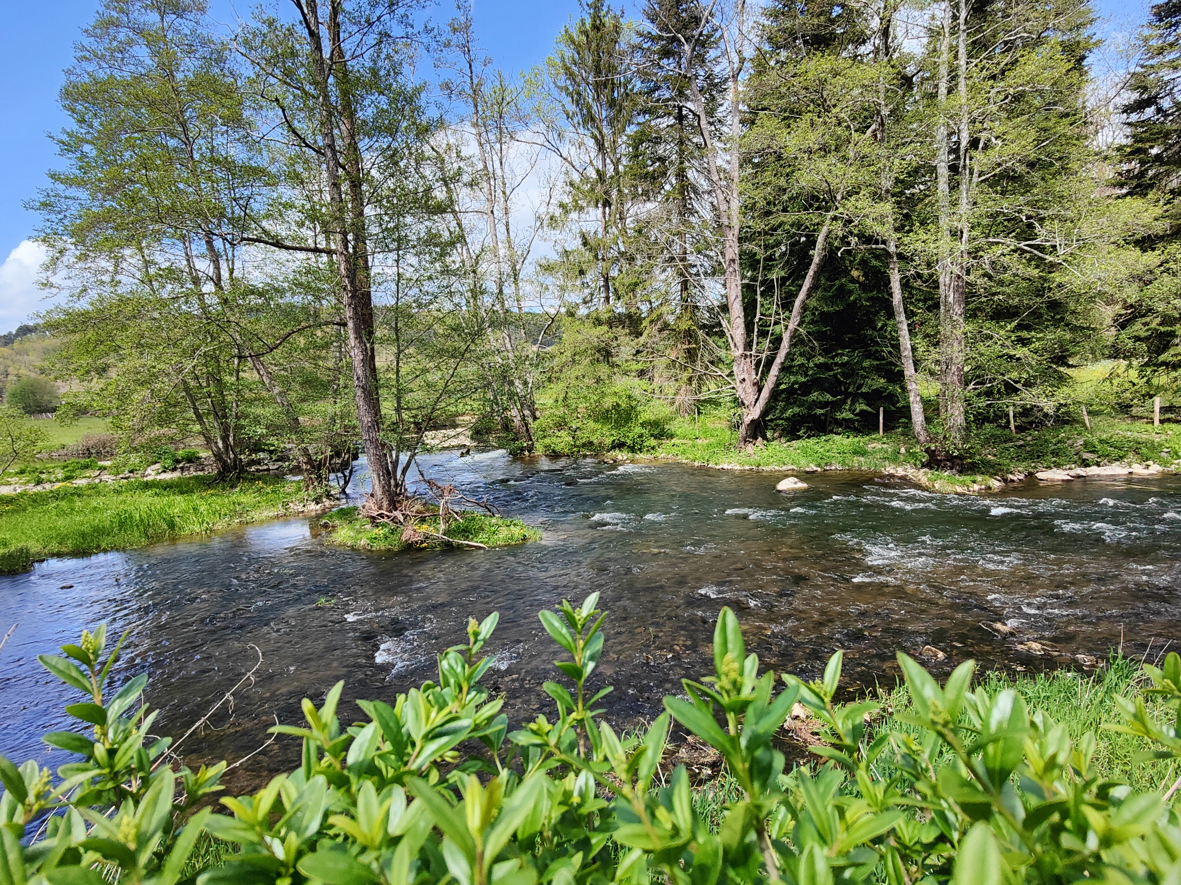 Paysage sympathique avec la rivière qui permet aux enfants de jouer à la construction de petits barrages. De belles balades pédestres à faire.