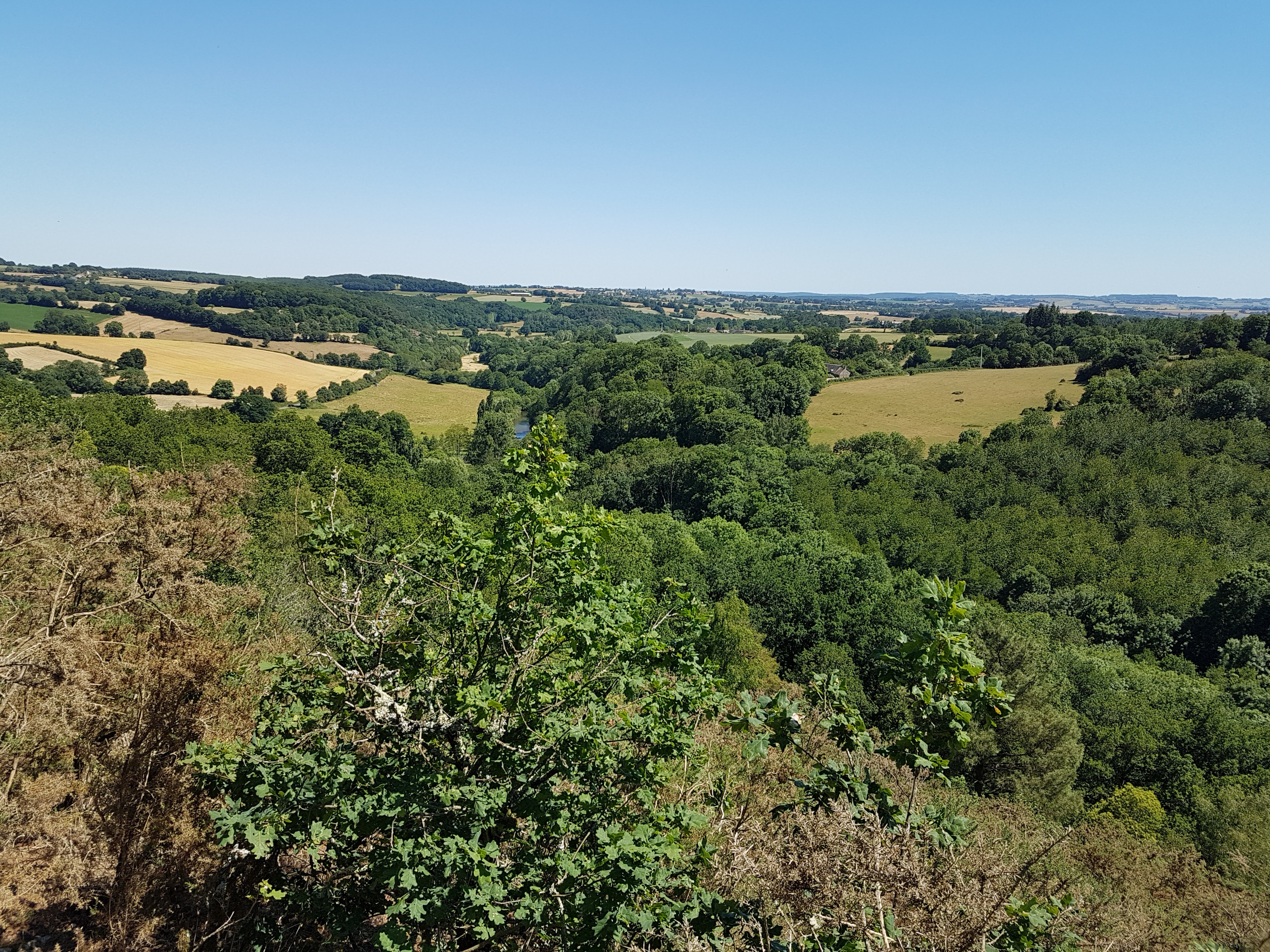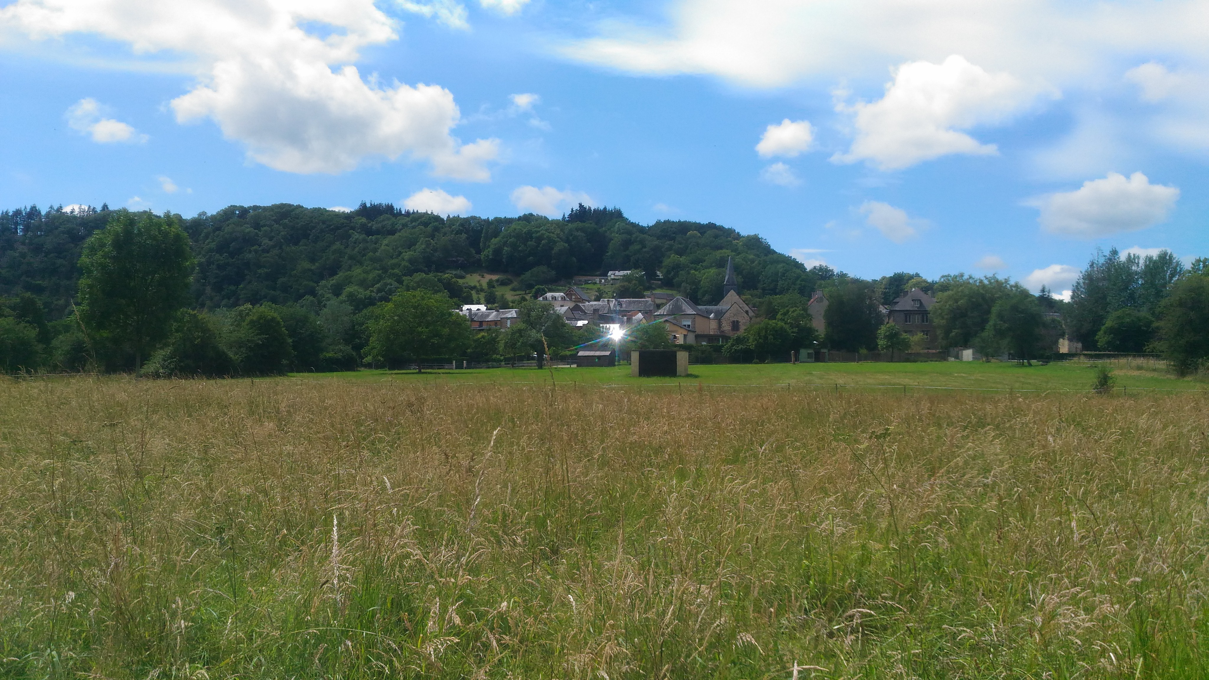 Balade très agréable sur le Haut Fourché avec vue sur le village de St Léonard des Bois.