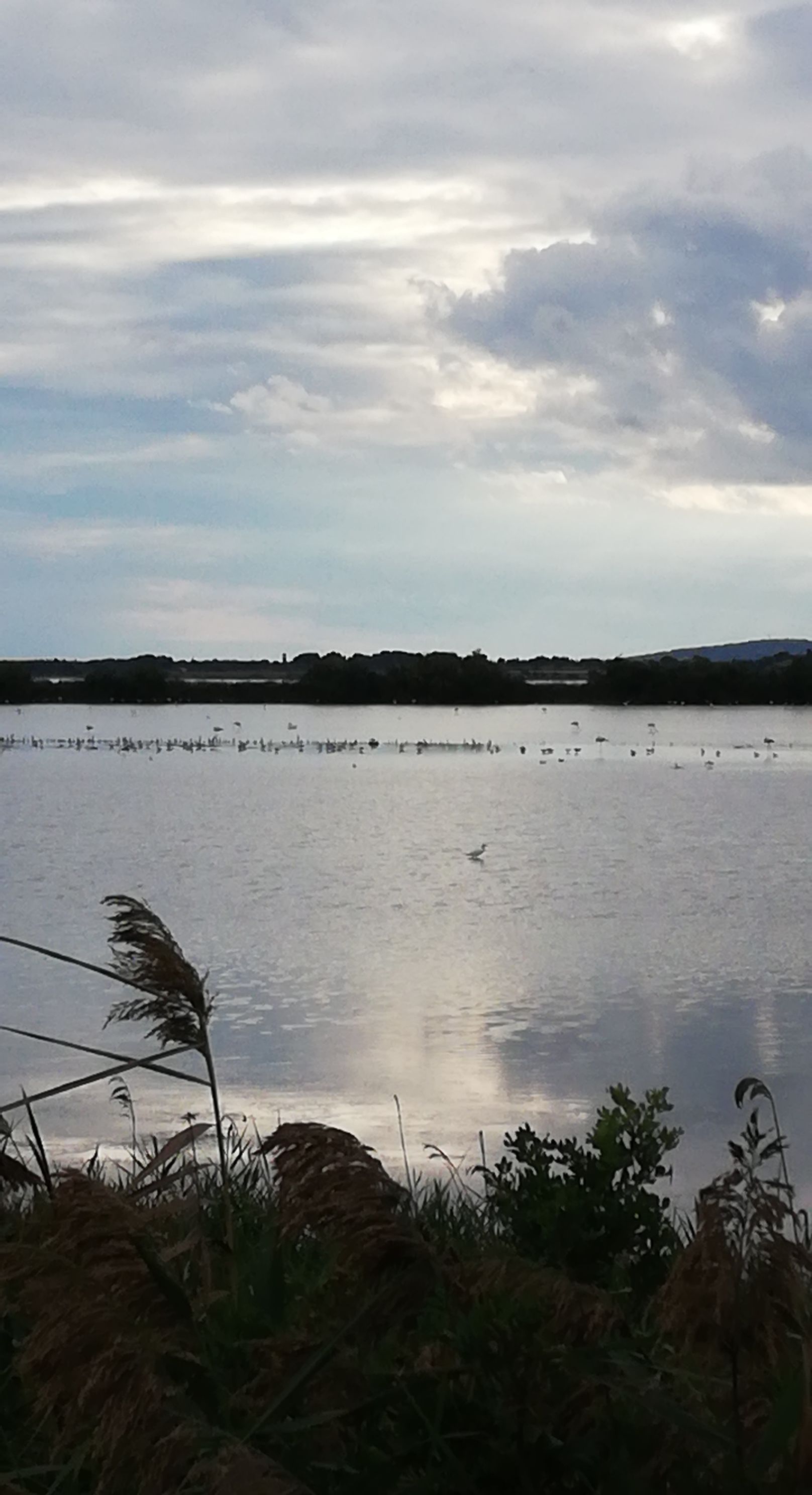 Début juillet, beaucoup d'oiseaux observés. Des flamands roses, des tadornes, des hérons cendrés, des aigrettes, des échasses et même un ibis noir.