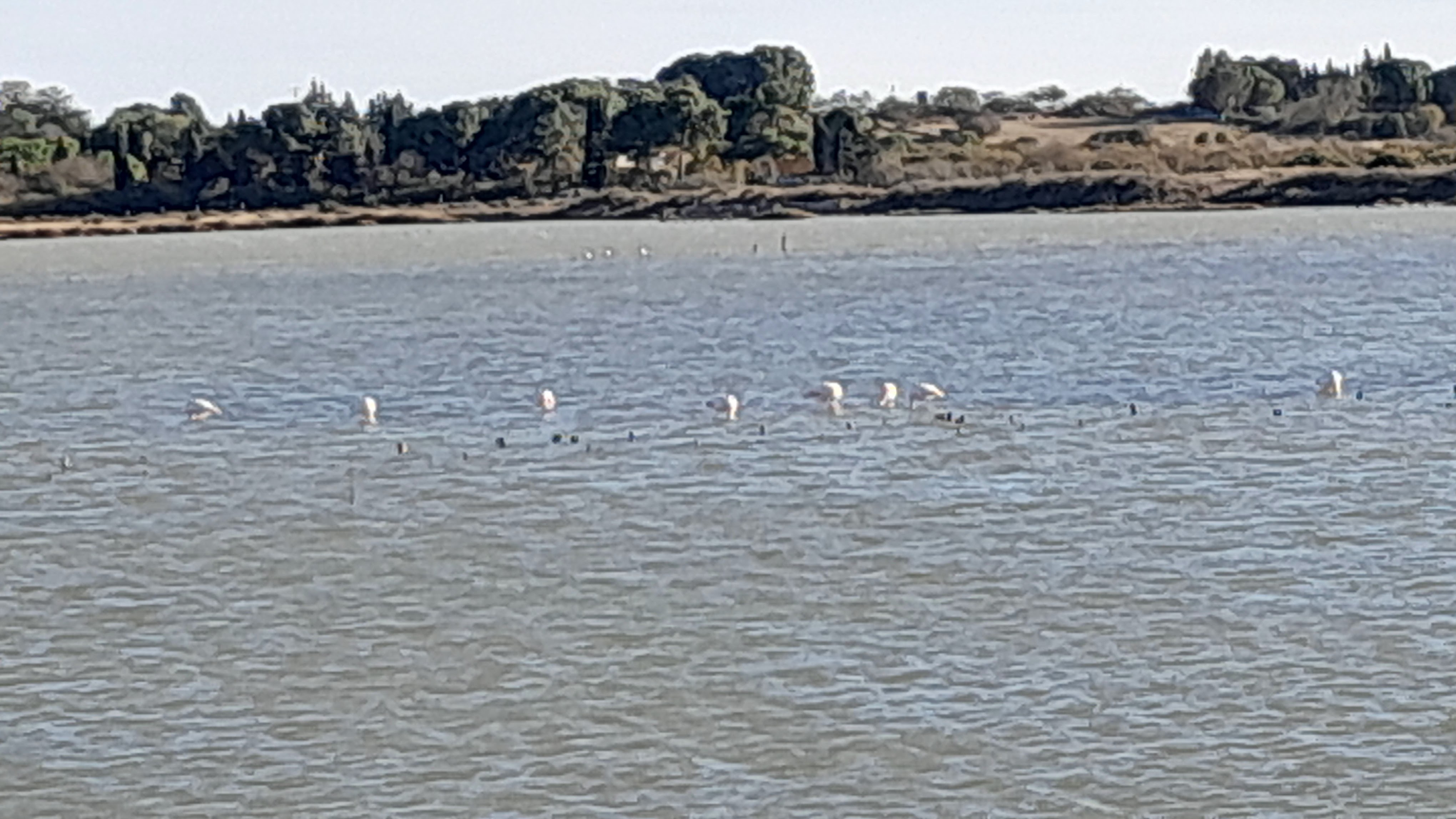 Un très bel endroit bien agréable pour se promener avec vue de flamants roses